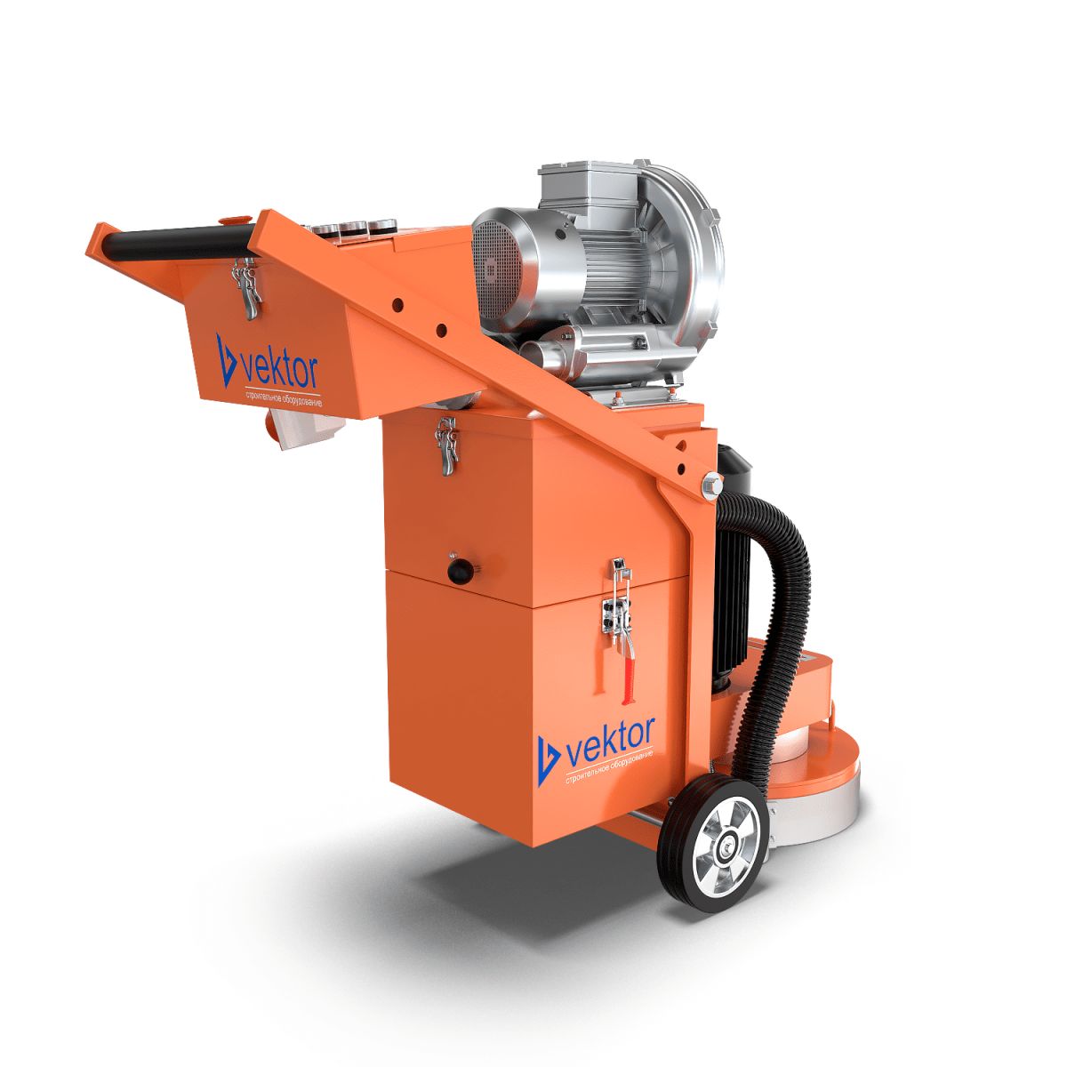 Мозаично-шлифовальная машина Vektor MG-330EF предназначена для обработки верхнего слоя сухой бетонной стяжки, асфальта и мозаики.