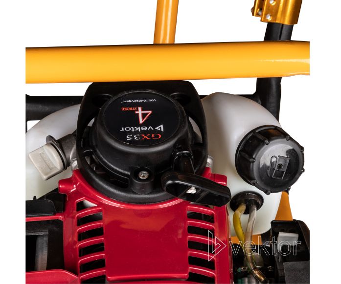 На оборудовании установлен двигатель собственного производства Vektor GX-35.