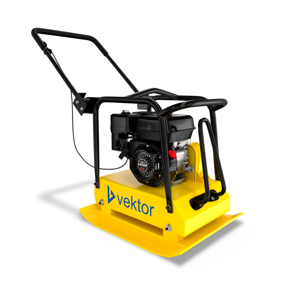 Виброплита работает на бензиновом двигателе Lifan, что делает её автономной. Мощность двигателя 4,8 кВт/6 л.с.