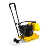 Складывающаяся ручка управления и колесо для перемещения упрощают транспортировку виброплиты.